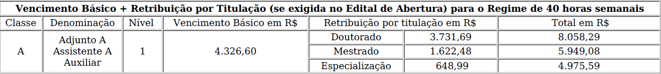 A remuneração do cargo está disposta da seguinte forma: